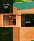 Featuring a fir wood construction, this cosy hutch is the perfect home for your little pets. It incorporates two living areas; one cosy bedroom on the upper level and a spacious integrated ground enclosed playroom. The four doors provide easy access and cleaning to the living areas and are equipped with strong, firm security locks. The hutch is waterproof, anti-termite and is made of TUV approved eco-friendly materials. Moreover, it features a green asphalt roof to insulate your pets from the heat during summer and against the rain in winter providing maximum comfort to your pets all year round. Not only providing a five star living environment, the architectural design also makes cleaning and feeding easier for you!