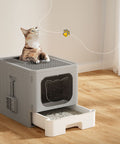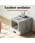 i.Pet Cat Litter Box Large Tray Kitty Toilet Enclosed Hooded Foldable Scoop Grey