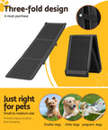 Joint pain is a common problem as your dogs start to grow into their senior years, which can seriously affect their quality of life. Your furry companions love to be by your side. But when you're on a couch, in bed, or in your car, it can get harder for them to reach you. Having to frequently climb up and jump down may damage and worsen their joint pain. Prevent your furry friends from getting injured with our i.Pet's dog ramp and steps. Made from quality eco-friendly polyethylene with matte finish, our dog ramp boasts sturdy structure and durable construction. It's suitable for both big and small dogs and has good weight holding capacity. The non-slip surface and a safety latch prevents accidental slips and ensures ultimate stability, and the water-resistant and temperature-resistant surface makes it suitable to use anytime. Our dog ramp is lightweight, and its portable design makes it easy to move around. Furthermore, it boasts a three-fold design, which makes it easy to store. Surprise your beloved pets with our i.Pet's dog ramp and steps today. It'll make them feel loved and cared for.