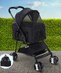 i.Pet Pet Stroller Dog Pram Cat Carrier Travel Large Pushchair Foldable 4 Wheels Black